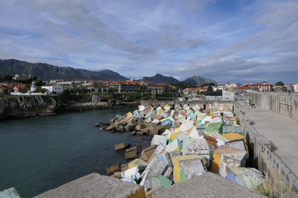 תחנתנו הראשונה, הנמל של Llanes לבדוק מקרוב את הקוביות הצבעוניות של Augustín Ibarrola גושי בטון ענקיים המגנים על רציף הנמל ורובם מצוירים וצבועים,